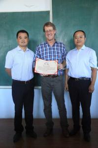 报告会后,学院梅士伟副书记与合作企业吉林省合一农业负责人孙云鹏经理共同宣布启动“大学生创新创业”院企合作平台建设,并向ATWILL教授颁发了“大学生创新创业”指导教师聘书。学院和企业将共同围绕食品安全这一主题打造大学生创新创业平台,通过实践训练、创新竞赛、创新基金等方式为大学生提供创新创业支持。ATWILL教授也表示很高兴将自己所收集的创新创业经验和素材与同学们分享,支持大学生科研创新。