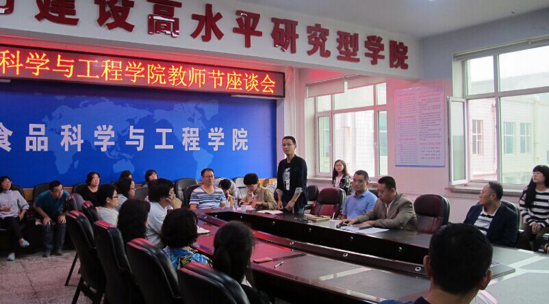 在食品楼三楼会议室召开庆祝第三十二个教师节座谈会。做爱视频