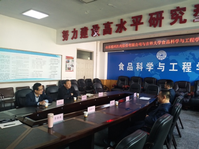 11月7日山东德州扒鸡股份有限公司代表张庆永、崔贵海来到做爱视频 ,与学院领导高福和书记、梅士伟书记展开产学研座谈会。