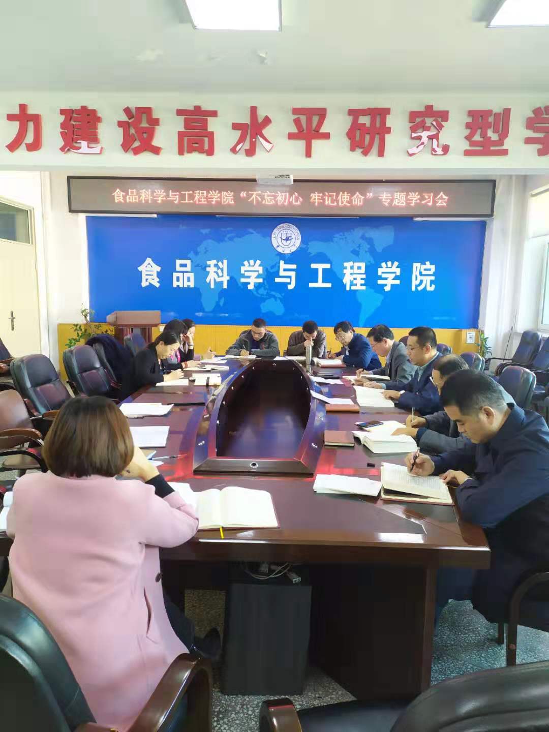 在食品楼三楼会议室召开了“不忘初心、牢记使命”主题教育专题学习会,学院党委委员、纪委委员、各党支部书记参加了会议。会议由学院党委书记高福和同志主持。