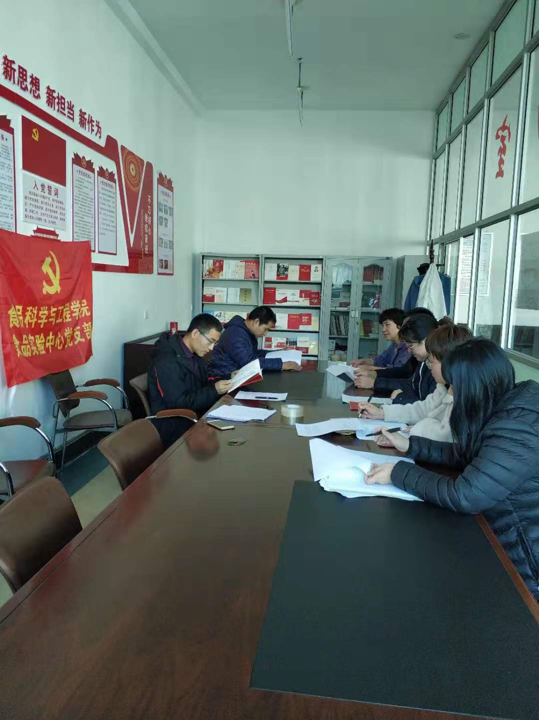 实验中心支部于2019年11月15日上午9:00,在学院党员活动室开展了“不忘初心,牢记使命,深入学习贯彻习近平新时代中国特色社会主义思想,做合格党员”的主题党课活动,此次会议由王二雷同志主持,共计6名党员参加。