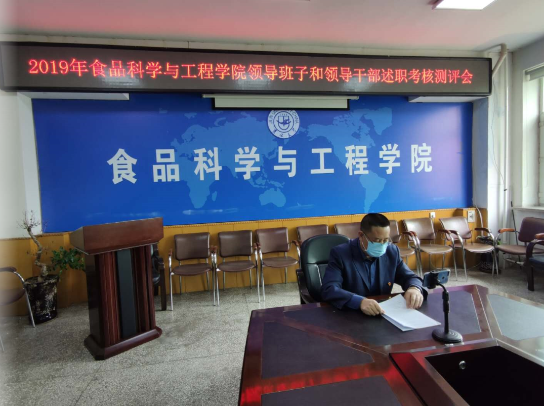 在食品楼三楼会议室召开了学院全体教职工及学生代表视频会议,进行学院领导班子和领导干部述职测评。学院领导班子成员、全体教职工及学生代表共70人参加了视频会议,会议由学院党委书记高福和同志主持。