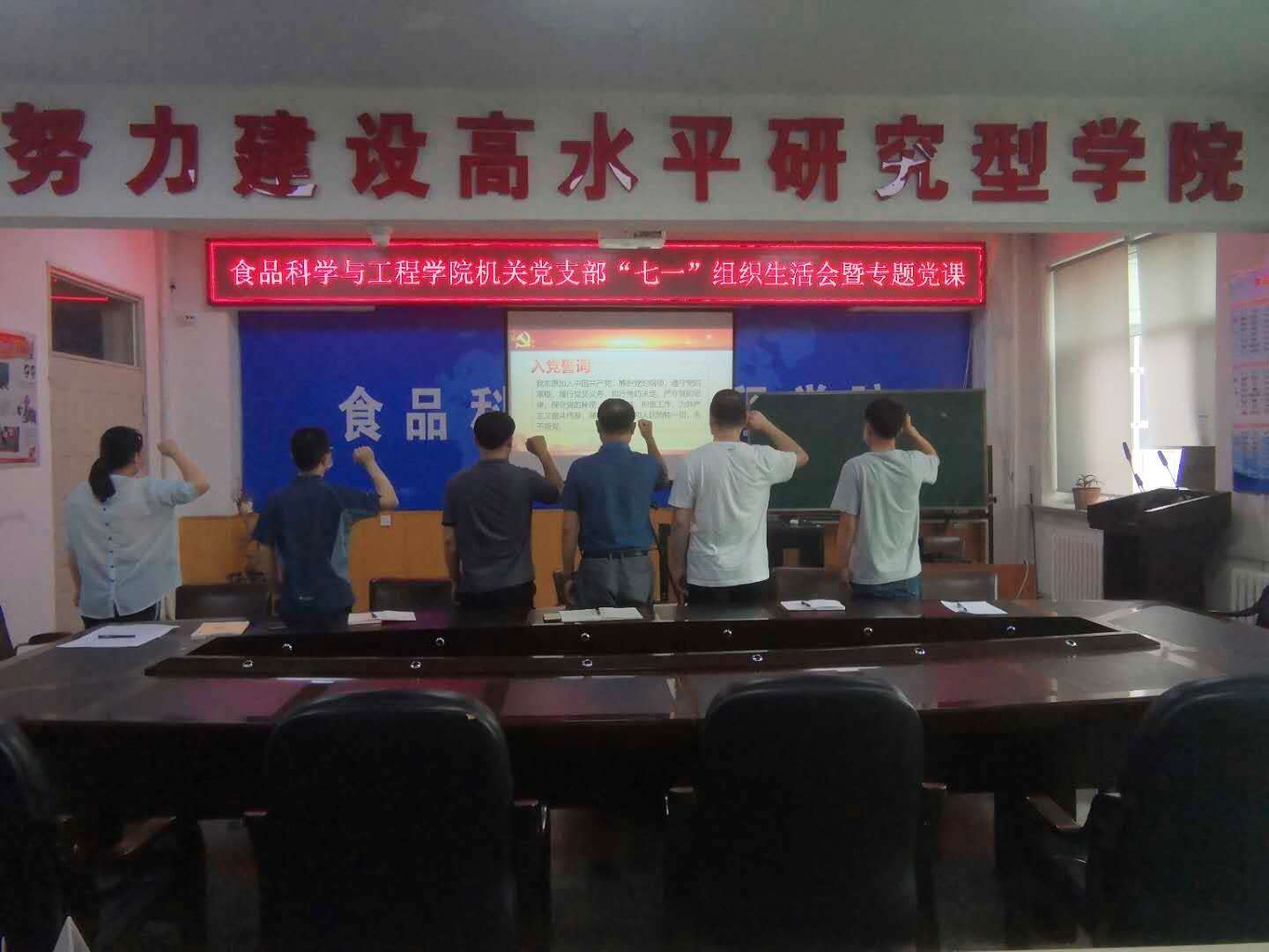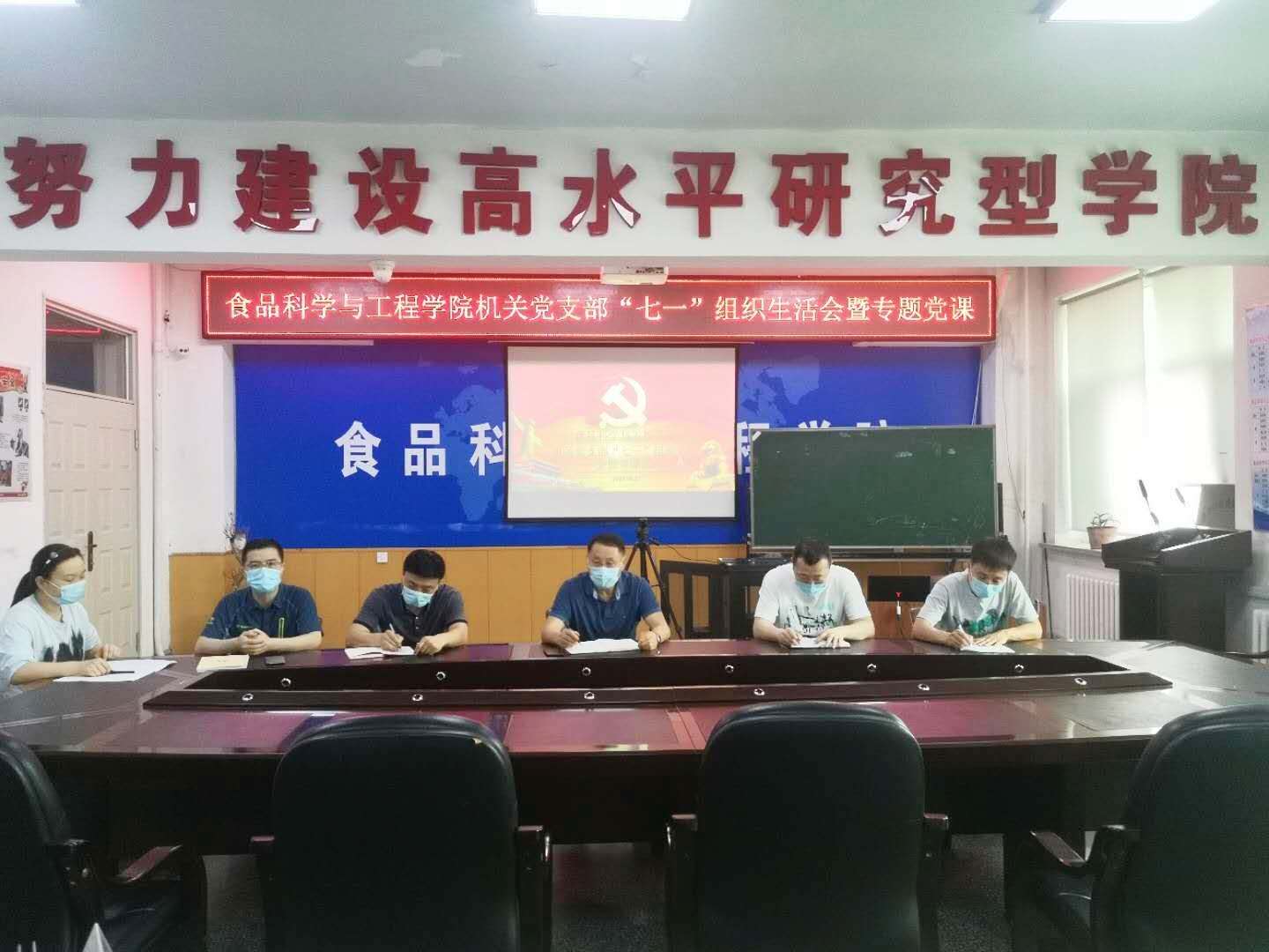 机关党支部在食品楼三楼会议室举办了“七一”专题组织生活会暨专题党课,机关党支部全体党员参加了会议。学院机关党支部全体党员参加了此次会议。会议由党支部书记马爽同志主持。