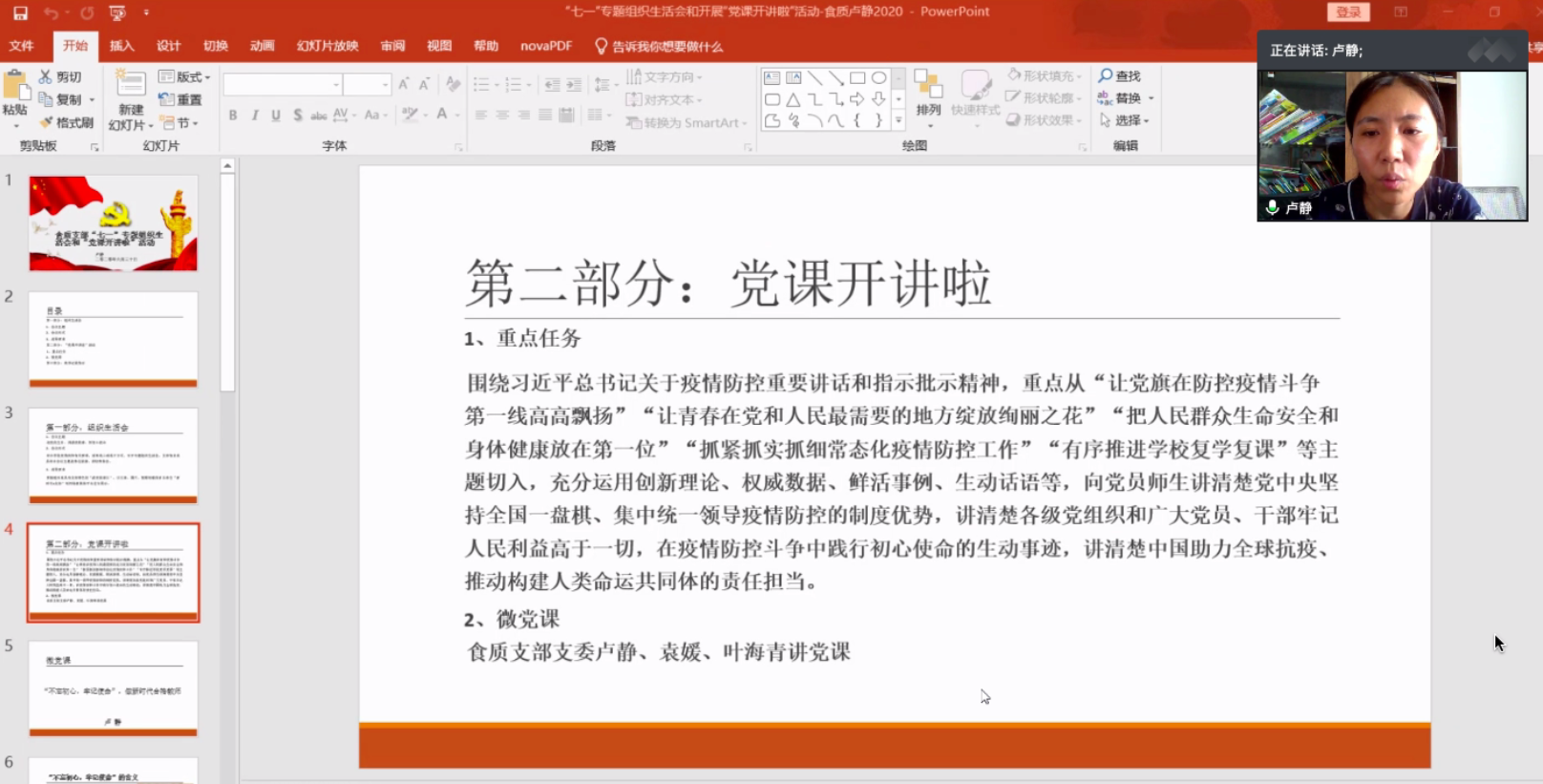 2020年6月30日下午,食品质量与安全系教工支部依托腾讯会议召开线上“七一”专题组织生活会和开展“党课开讲啦”活动,做爱视频