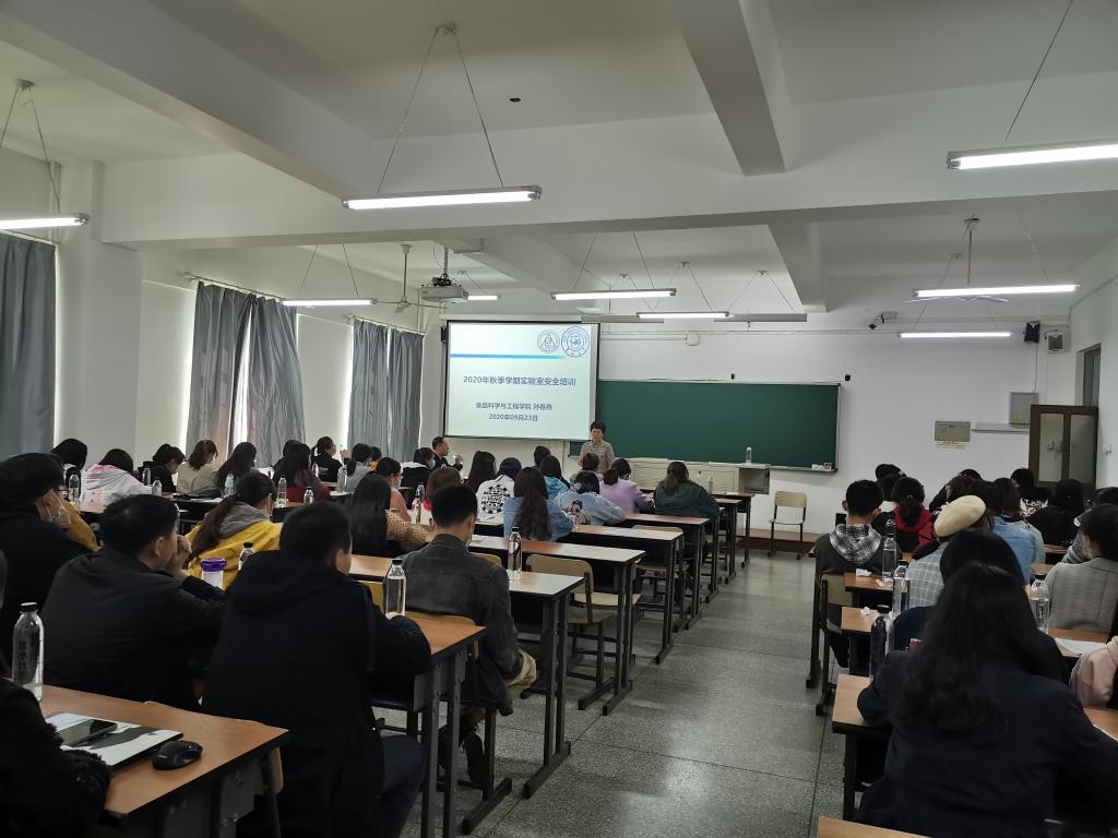 校史,帮助学生们深入了解校史校情,增强学生们作为“吉大人”的责任感、使命感和自豪感。随后书记带领学生们重点深入学习了黄大年教授的先进事迹活动,教育学生们自觉做到勤学、修德、明辨、笃实,爱国、励志、求真、力行,引导学生们做实现中华民族伟大复兴中国梦的追梦者和筑梦者。最后通过黄大年精神来引导学生们坚定理想信念,树立正确的学习态度和科研态度。9月23日下午,孙春燕副院长和李勇军副院长召开了实验室安全知识培训、消防器材的使用以及应急疏散演练培训会。李勇军副院长在会议上强调了安全教育培训及演练的目的和重要意义。孙春燕副院长结合学校、学院各项安全管理制度,对实验室安全知识、管理规章制度等方面进行了重点讲解。