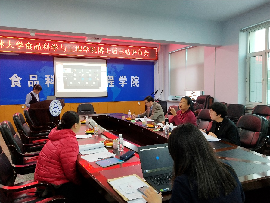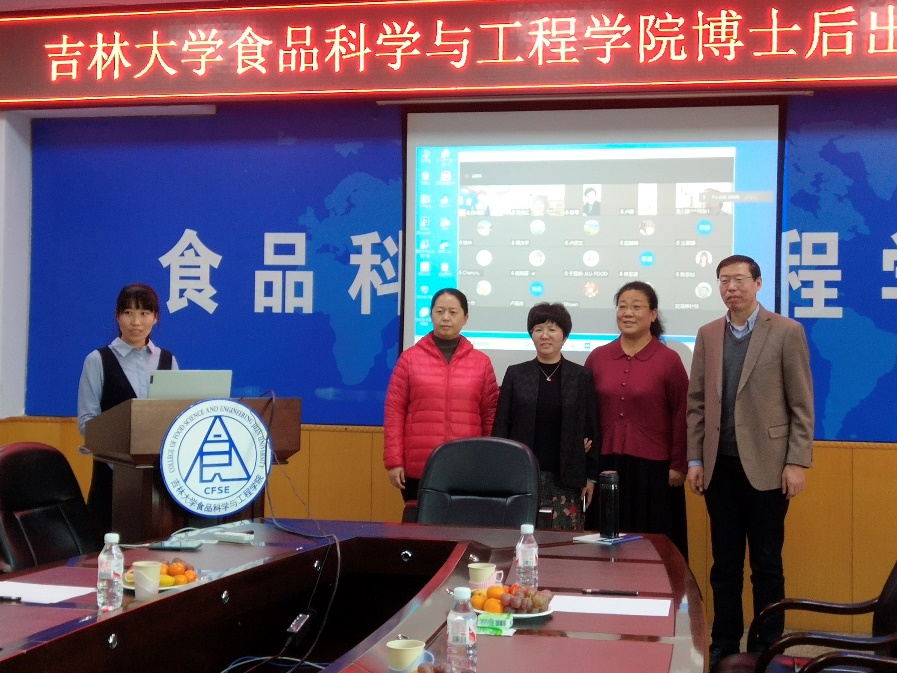 于食品楼三楼会议室召开博士后出站评审会,由闫晓侠博士做主要报告,线上腾讯会议同步进行。本次答辩会由吉林农业大学闵伟红教授担任评审主席并主持会议,出席答辩会的专家评审有长春大学赵珺教授、我校周江教授、刘静波教授、孙春燕教授、于亚莉教授、卢静教授,以及合作导师张铁华教授。