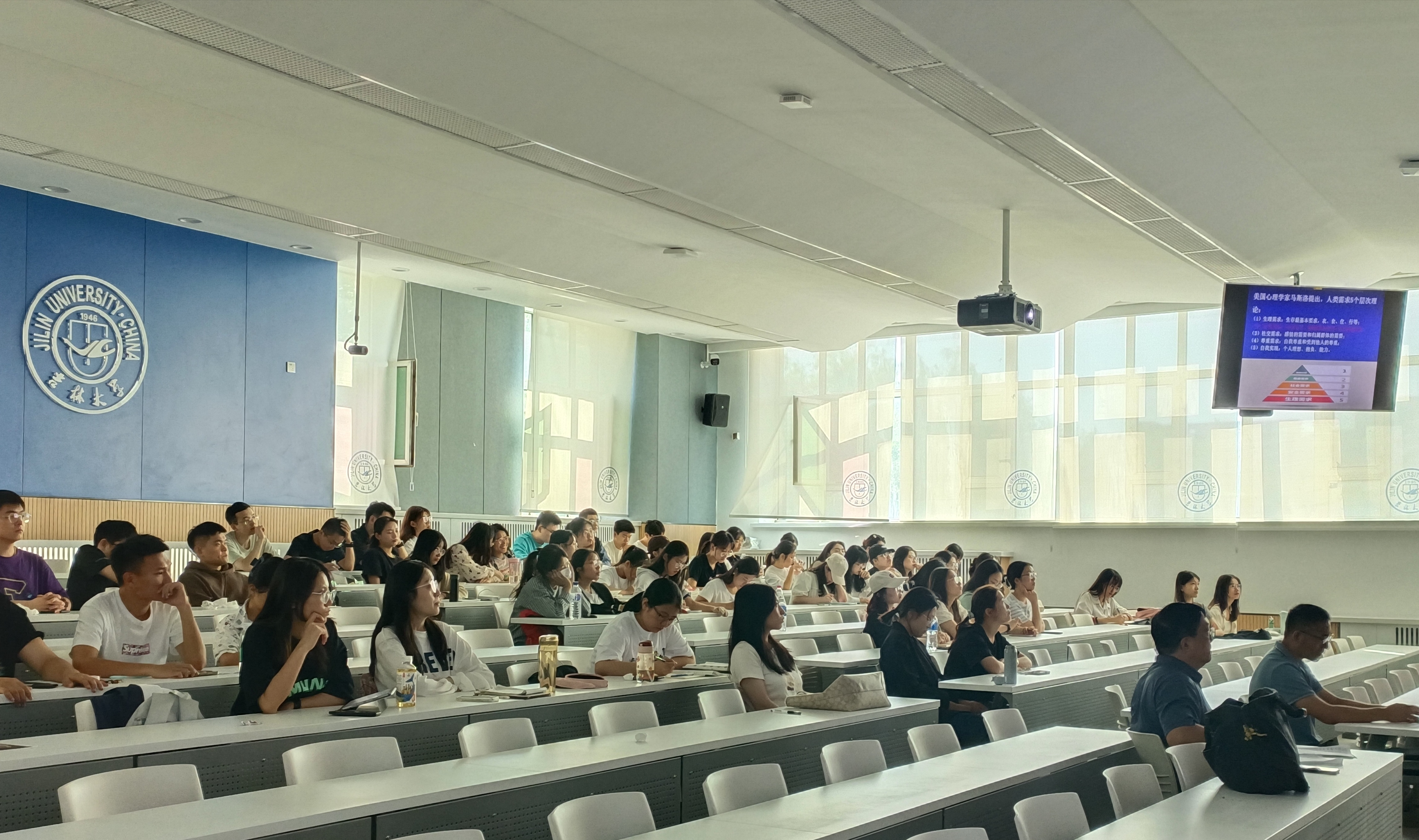 于科学讲堂200教室开展消防安全与实验室安全培训,科研副院长周亚军、行政副院长陈玉江、实验中心科研副主任王二雷老师以及全体2023级研究生参加会议。