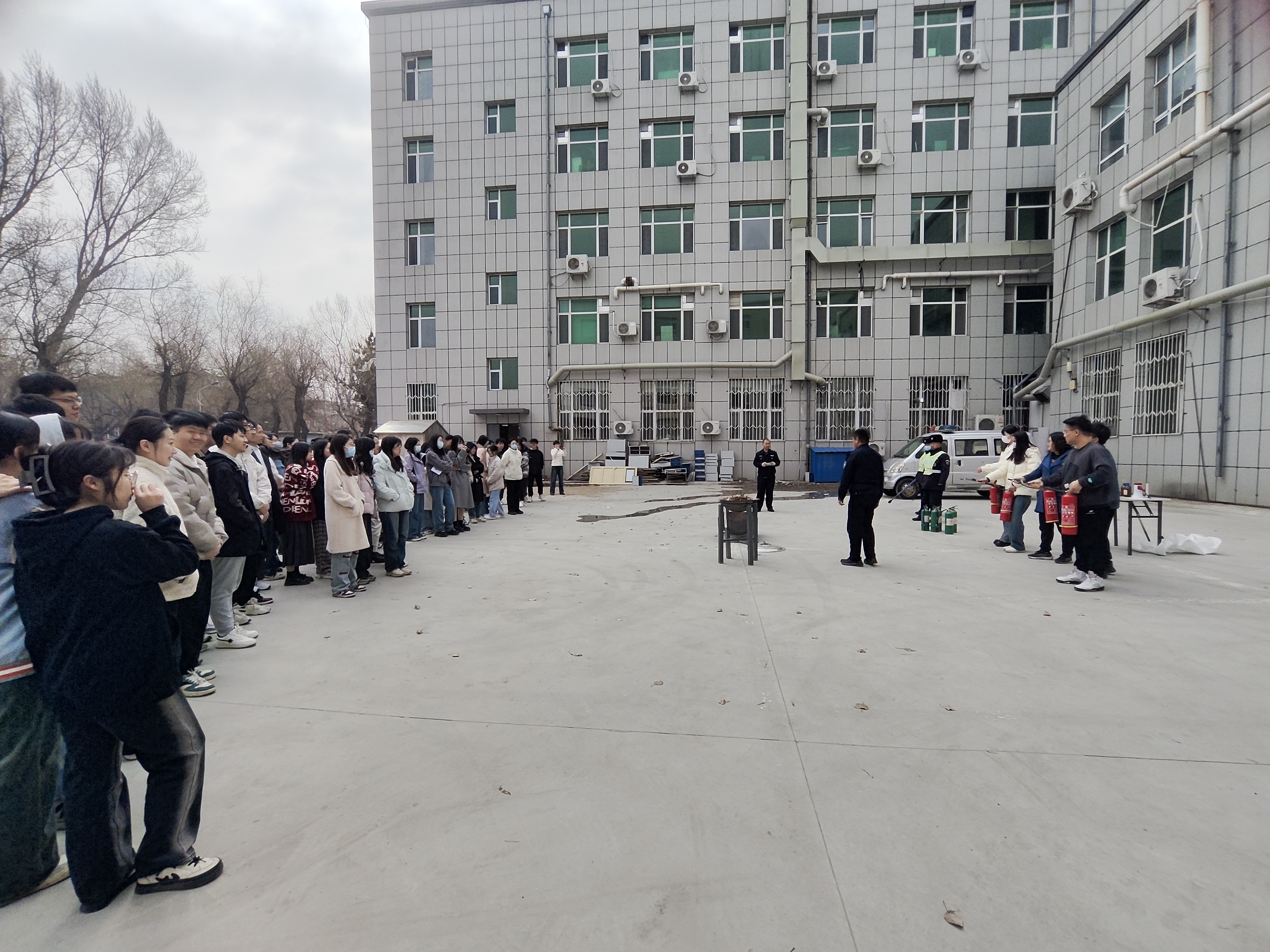 随后,组织开展了消防安全疏散逃生及消防灭火演练活动。火灾警铃响起,学院师生在保卫处老师们的指导下按照应急疏散安全路线快速撤离。西区保卫办任亚峰老师对火灾初期的扑救、控制及灭火器使用等进行了详细讲解。