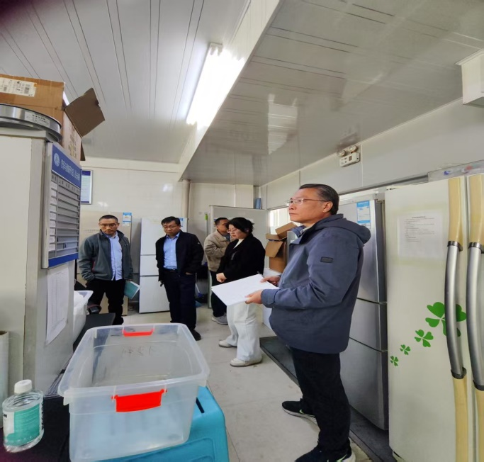 联合检查中,学院领导深入各个实验平台,重点围绕设备运行状况、危化品管理情况、消防设施配备及用电规范等关键领域,进行了全方位、无死角地排查。每到一处,学院领导们都详细询问各平台安全管理制度的执行情况,并针对实验室危险物品存放、实验器材老化损坏、实验废弃物存放不当等安全问题进行现场督导,提出专业指导意见。