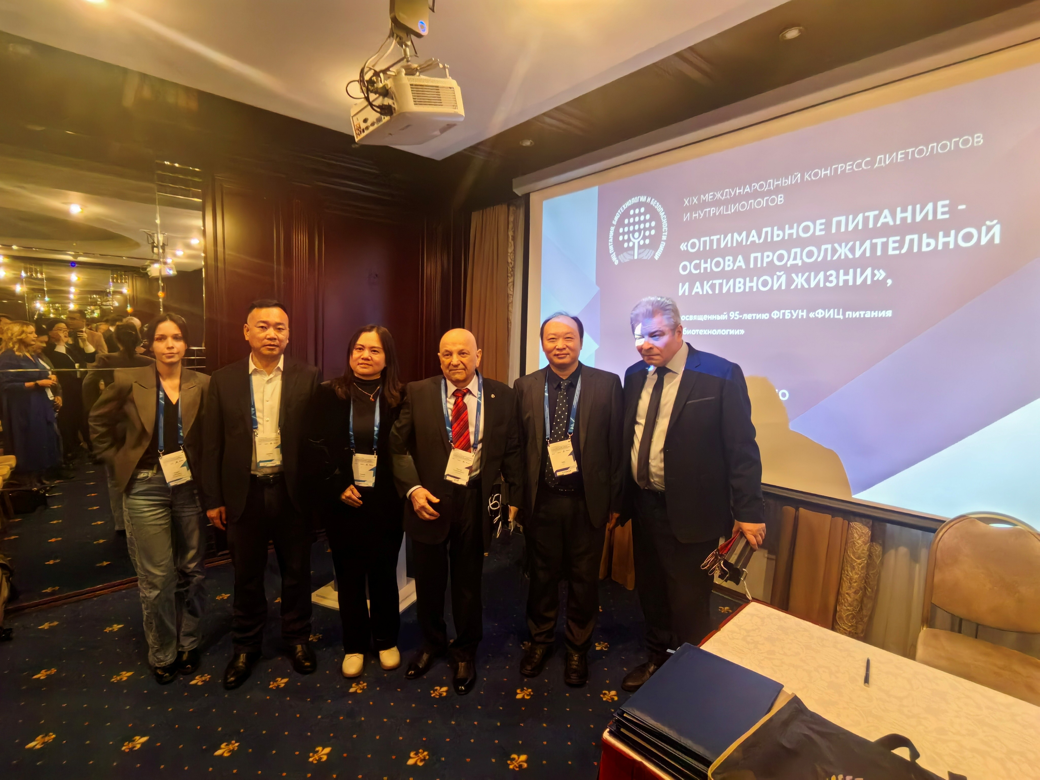 访问期间,李杨教授受邀参加了在莫斯科举办的第十九届国际饮食与营养学家大会,并发表大会致辞,向国际同行系统介绍中国在大豆深加工领域的科技创新、研究成果以及国际合作潜力。会议期间,李杨教授还与俄罗斯科学院院士图捷利扬·维克托尔、尼基秋克·德米特里及通讯院士谢尔芭·耶列娜、吉尔吉斯斯坦外籍院士科奇科罗娃等进行了学术交流。