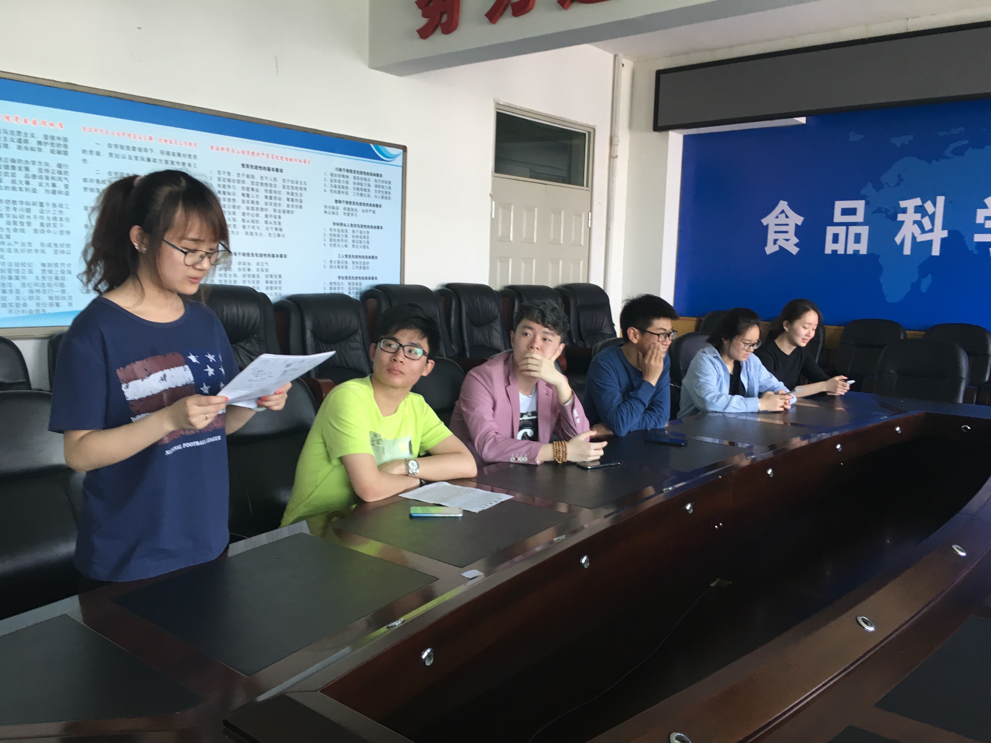 学生党支部在食品楼三楼会议室举办“学党章党规、学系列讲话,做合格党员”学习教育讨论活动。学生党支部全体党员和入党积极分子参加了此次学习活动。此次活动由党支部副书记董玥滢主持。 会上,董玥滢同学首先带领大家学习了《军需科技学院“学党章党规、学系列讲话,做合格党员”学习教育实施方案》,并对此实施方案进行了详细解读,要求全体党员贯彻“两学一做”的总体要求,明确“两学一做”的教育内容,落实“两学一做”的主要措施。随后,与会党员积极参与交流,支部成员依次对自己认为的党规党章中易混淆的知识点进行了分析解读,并和大家分享了自己周边与“两学一做”有关的事例。大家表示一定要认真学习贯彻“两学一做”的教育内容,充分认识“两学一做”的重大意义。同时也希望支部的集中学习能和党员的个人学习结合起来,多开展专题学习讨论,运用创新方式将生活实际与党课紧密连接,结合身边事例,现身说法。 通过此次学习教育讨论活动,与会者们对“两学一做”的现实含义有了更为深刻的了解,对如何做一名合格党员有了更清醒的认识。全体支部成员会把“两学一做”融入日常,全面提升自身思想政治素养,加强支部建设,推动支部思想建设、作风建设、纪律建设有机结合。