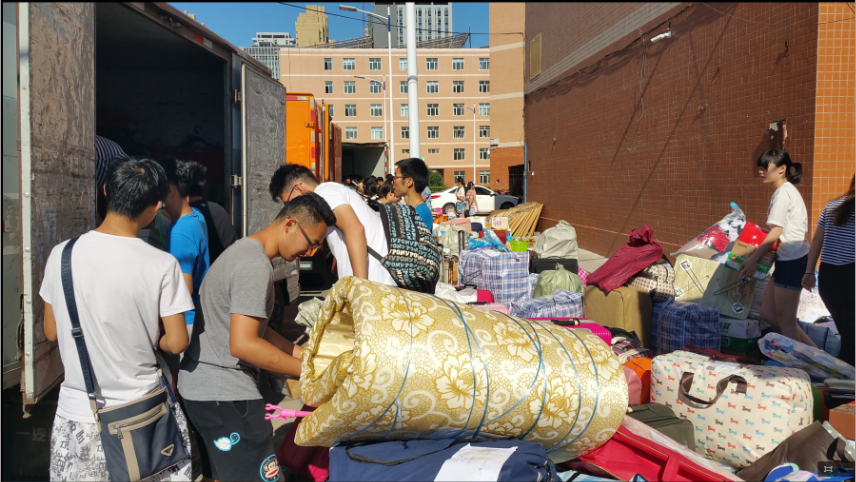 顺利完成2015级学生寝室搬迁工作,将入住在南区大学城二、三号公寓的151名学生全部搬入和平校区一、三号公寓。西区保卫办公室主任籍海春,学院党委书记高福和、副书记梅士伟,科学调度,全程指导搬迁工作。西区学工办梅娜老师,学院学工办主任兼团委书记王丹、辅导员金鑫、师小达老师深入学生公寓组织搬迁工作。 为确保学生搬迁工作按时、有序、安全、顺利进行,在寝室搬迁工作开始之前,学院召开搬迁工作动员会,落实了班级负责同学、志愿者、搬迁次序等工作,对搬迁工作的具体流程安排、安全问题及预案设置等向学生干部们进行了统一部署。 7月14日,早上7点搬迁工作正式开始,同学们按照搬迁方案有条不紊的将行李搬运、装车、卸载、搬寝。全体同学齐心协力,互相帮助,互相配合,将1000余个行李箱安全、有序的运送到位。在此次搬运过程中,学院男生不辞辛苦,积极帮助女生搬运所有行李,将乐于助人的品质演绎的淋漓尽致。搬迁工作于中午12点基本结束,随后,学院领导和老师们再次逐一巡查了新寝室的情况,叮嘱同学们保管好贵重物品,并对寝室的合理布置给予意见,确保搬迁工作圆满结束。 在学院的精心组织、同学们的努力付出和西区学工办、保卫办等部门的积极配合下,整个搬迁工作进展顺利,秩序井然,圆满完成了我院寝室大搬迁任务,为今后我院学生寝室精细化管理打下基础和提供保障。