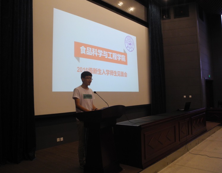 的基本情况,同时鼓励新生脚踏实地,积极追梦。教师代表、食品科学与工程系高峰副教授代表教师向新生送上了关心与期望。2016级研究生杜志阳和本科生封宇晴两名同学分别代表新生表达了对今后学习科研生活的憧憬和向往,并表示自己一定会脚踏实地,努力学习,不辜负学院老师的殷切期望。在随后进行的师生互动环节,与会师生就新生同学关心的学业规划、课余生活、学习方法等问题积极进行了积极交流,不仅提高了新生同学的专业兴趣,同时也对大学生活有了进一步的认识。 见面会最后,学院高福和书记作了总结讲话。他希望全体新生学会适应、学会独立、学会包容、学会坚强、学会反思,鼓励同学们在全新的环境下勇于接受挑战,合理规划生活,积极开阔眼界,实现自我价值,并祝愿新生拥有一个完美的大学生活。 见面会前,学院分专业组织新生参观了学院专业实验室,并开展了专业介绍和答疑。通过此次会议,新生们加强了对学院及专业的了解,感受到了学院浓厚的学习氛围,更激发了学习热情。希望大家能够积极努力,共同创造出食品学院的美好明天。