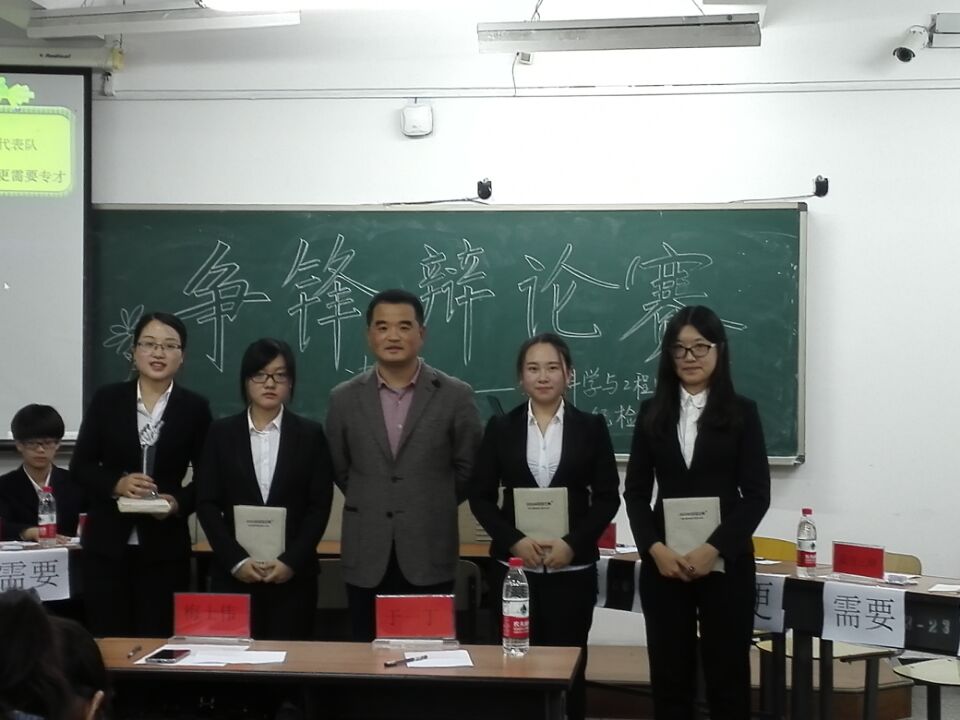 学生会举办了学院第二届“争锋”辩论赛。经过一周的激烈角逐,2015级食品质量与安全专业五班代表队与六班代表队冲出重围,进入最终的决赛环节。10月16日,“争锋”辩论赛决赛于科学讲堂301室举行,学院党委副书记梅士伟、团委书记兼学工办主任王丹、2015级兼职辅导员于一丁担任决赛评委。 决赛中,双方队伍首先进行独具风格的自我介绍,为评委及现场观众留下了深刻的印象。随后,双方就“现代社会更需要通才还是专才”展开了激烈的辩论,正方从现代社会与科技发展的综合化要求、人才培养的过于专门化带来的问题进行了阐述,而反方则从现代社会、通才与专才的概念辨析立论,唇枪舌战,不分你我。在观众提问环节中,同学们结合自己的思考,对辩手们提出了许多深刻的问题,现场气氛十分活跃。经过紧张的辩论,经评委合议,反方做爱视频