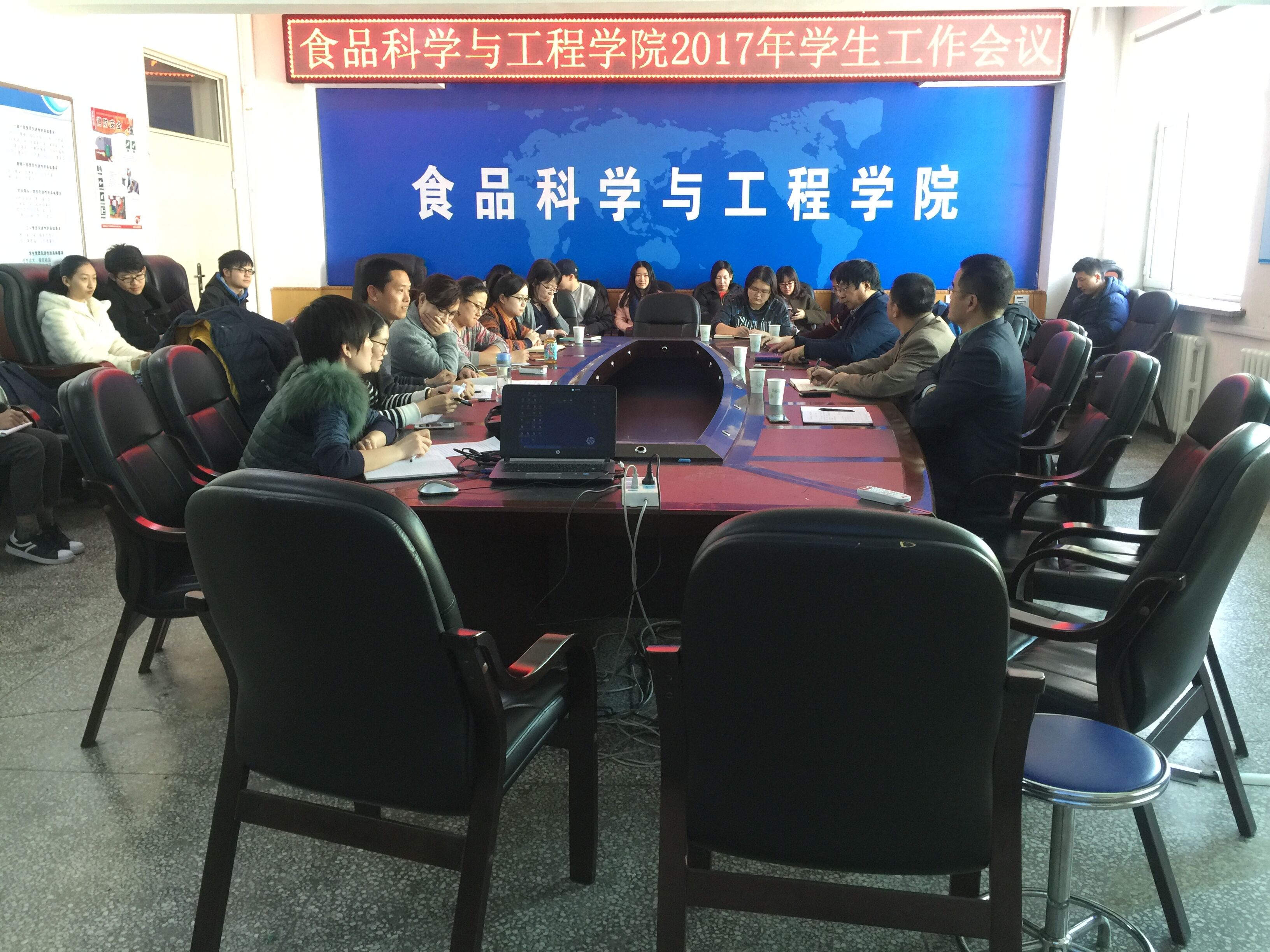 在食品楼三楼会议室召开2017年春季学期学生工作会议。学院党委书记高福和、院长助理周亚军、学工办主任兼团委书记王丹、各年级辅导员、班主任老师以及学生骨干参加了此次会议。会议由党委副书记梅士伟主持。 会上,各年级辅导员分别结合PPT汇报了2016年度大一至大四年级学生工作开展的具体情况。2013级辅导员师小达老师从学生的学业情况、就业方面、个人的事务工作及成长感悟等方面进行了汇报总结。2014级辅导员王丹老师着重分析了本年级学生的学业情况,有针对性的制定了学困生结对帮扶计划,促进学风建设。2015级兼职博士生辅导员于一丁通过问卷调查的方式对学生的假期心理状况、人生规划路径、寝室关系处理等方面进行细致排查,提出了切实可行的对策。2016级兼职博士生辅导员侯聚敏汇报了大一学生的思想动态、学业情况,分析了学生挂科现象的主要成因,并对新学期的工作进行规划和展望。 随后,与会人员围绕学生工作开展情况进行了讨论交流。15级班主任、院长助理周亚军老师结合自身担任班主任的工作经历指出,班主任使命崇高,责任重大,对自己的班级管理要充满热情,对学生培养要充满爱心,要为低年级学生讲好“人生规划设计课”,做学生的成长导师,引导他们“扣好第一颗扣子”,引导他们健康成长。 会议最后,2016级班主任、党委书记高福和作了总结讲话。他从学院学生工作和班主任工作两个层面对新学期的学生管理工作提出三点要求:一是要加强对学生各类信息的留存、整理,建立健全历届学生的数据信息库,做好归档工作。二是加强对学生教育、引导、管理工作,把握原则、掌握规律、找准尺度,提高人才培养的质量。三是加强对2015级学生的教育培养,把其当做学院的标尺,多维度观察,制定个性化培养方案,为今后的人才培养奠定基础,提供经验。