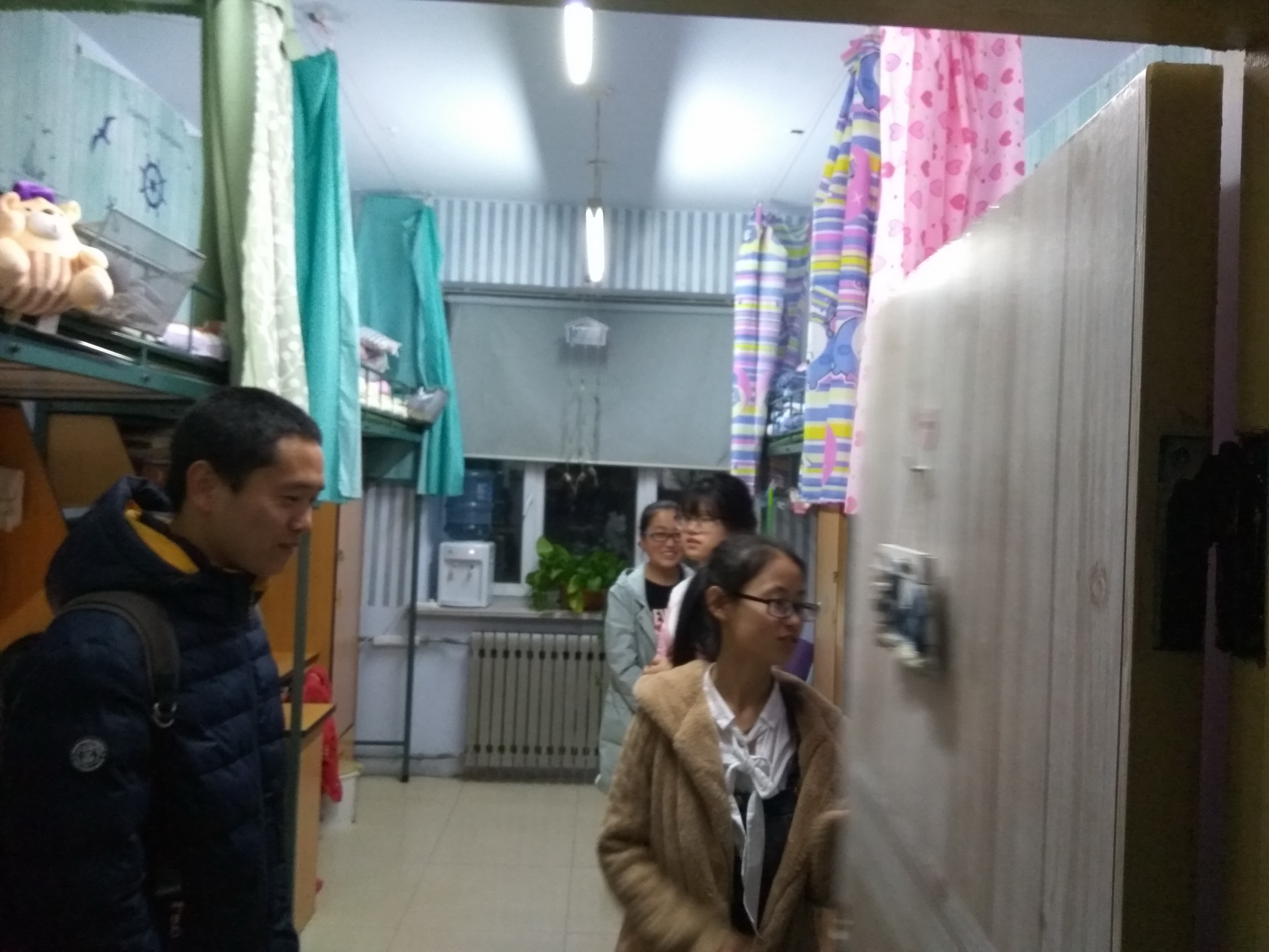2016级兼职辅导员侯聚敏老师带领学院学生会纪检部成员对大一年级开展了查寝工作。 查寝期间,侯老师详细地询问了同学们近来的学习及生活状态,并重点检查了寝室的卫生情况,使同学们感受到了老师的关怀。同学们的寝室环境大多干净整洁,井然有序,侯老师对环境良好的优秀寝室提出了表扬,对卫生存在问题的寝室进行了指正。侯老师不仅对每个寝室的卫生状况给出相应的评价,还为同学们建设良好的寝室环境提出了宝贵的建议。查寝结束后,我部将查寝的相关记录整理存档,并对本次查寝活动进行总结。 通过此次检查,不仅加强了宿舍安全管理,也提高了同学们的积极性,进一步营造了安全、健康、和谐的学习生活氛围。希望通过我们的工作,同学们能自觉保持室内卫生,让寝室生活更加安全、卫生、美好!