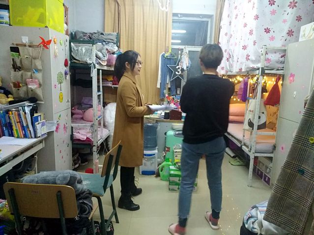 查寝期间,金老师亲切地询问了同学们的近况及动态,了解同学们的学习及生活状态,并重点检查了学生在寝情况和寝室的卫生情况。对个别未在宿舍的同学,及时问清了去向,同学们的寝室环境大多干净整洁,井然有序。老师要求同学们必须保持良好的寝室卫生并及时通风,为其建设良好的寝室环境提出了宝贵的建议。查寝结束后,我部将查寝的相关记录整理存档,并对本次查寝活动进行总结。