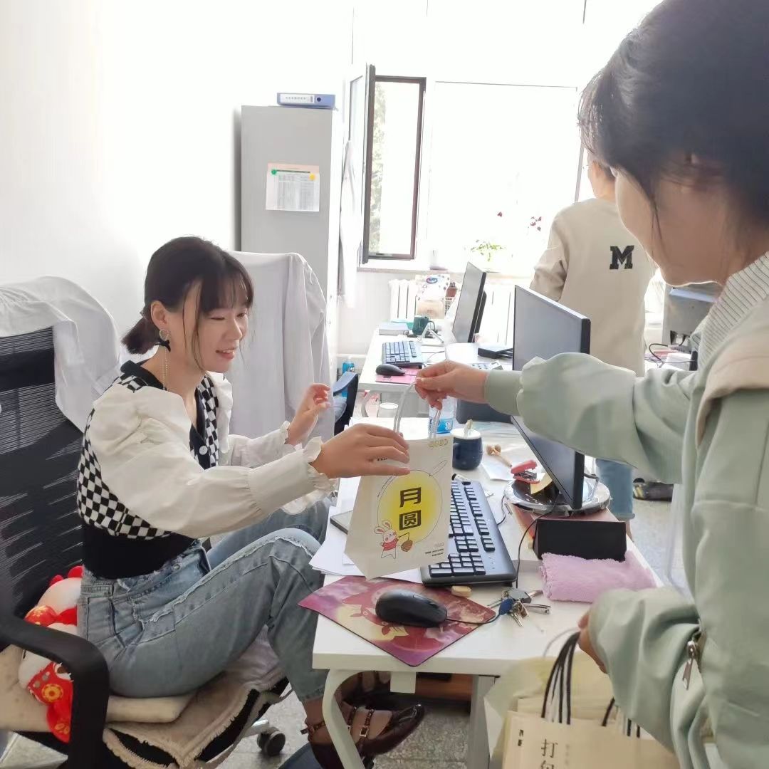 为全体教师送去了同学们亲手制作的月饼,衷心祝愿全体老师中秋、国庆双节快乐。中秋佳节,千里共婵娟,在这个欢聚一堂的时刻,没有比一份寓意团圆美满的中秋月饼更合适的礼物了。