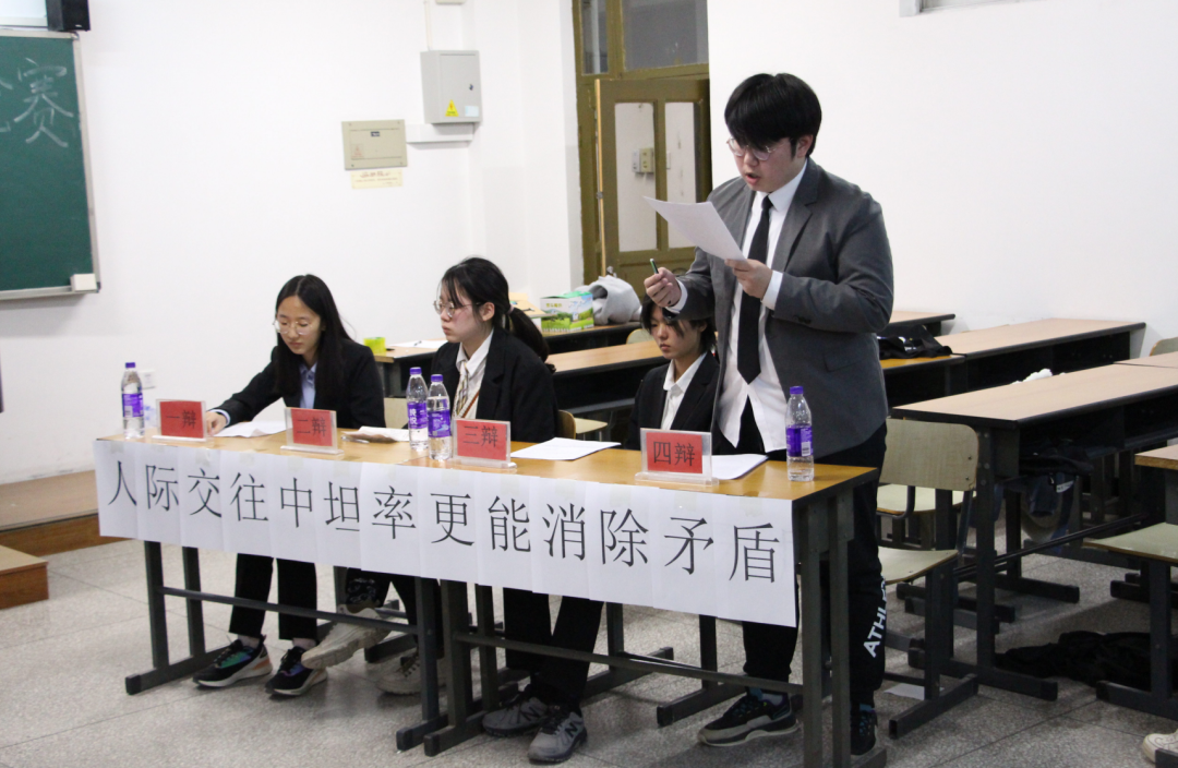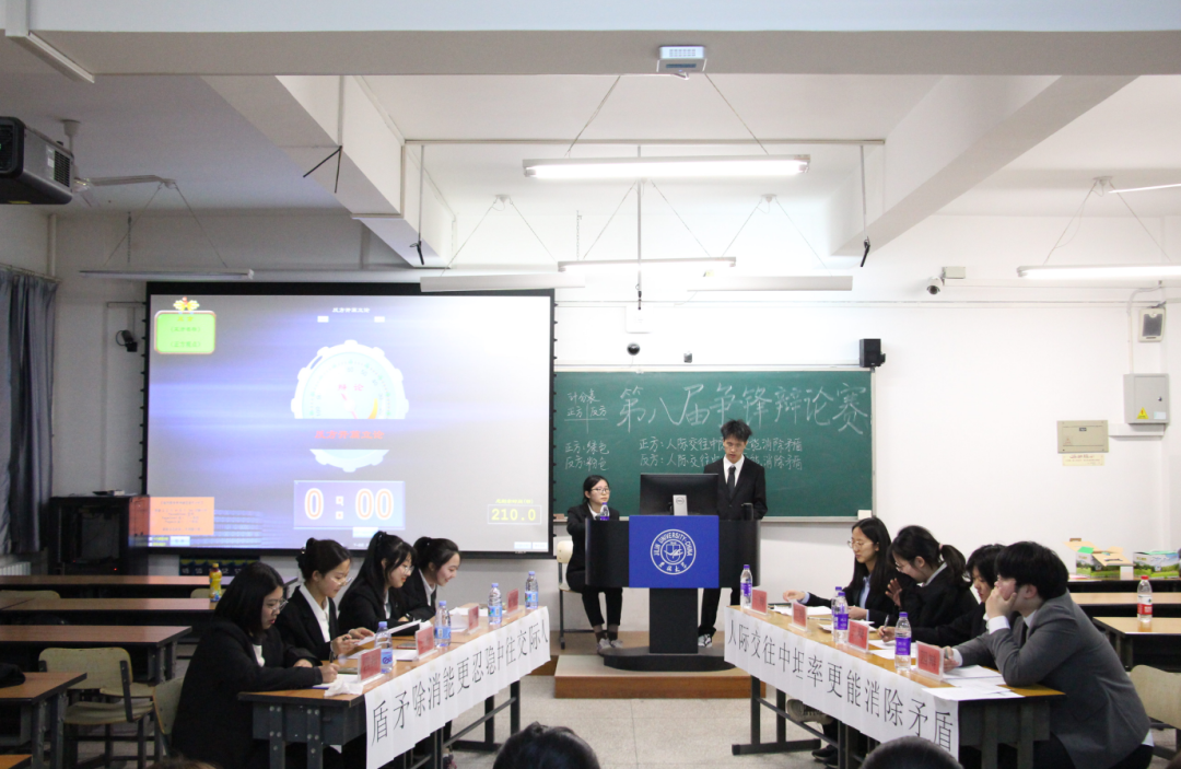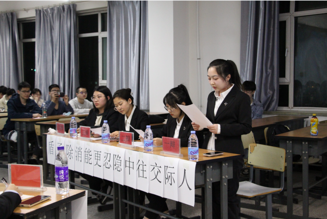 团委学生会学术实践部成员为大家宣读比赛规则及注意事项。随即,这场备受期待的辩论赛正式展开。首先,正反双方依次提出了他们的观点,并进行了相互质询以及小结,紧张的自由辩论环节紧随其后。