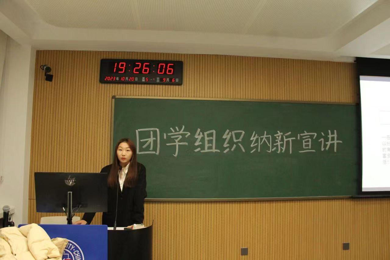 活动伊始,由轮值主席李亚楠向23级新生介绍了团学组织的总体情况,包括团学组织组成部门及各部门总负责人、团学组织基本职责、日常工作内容等。