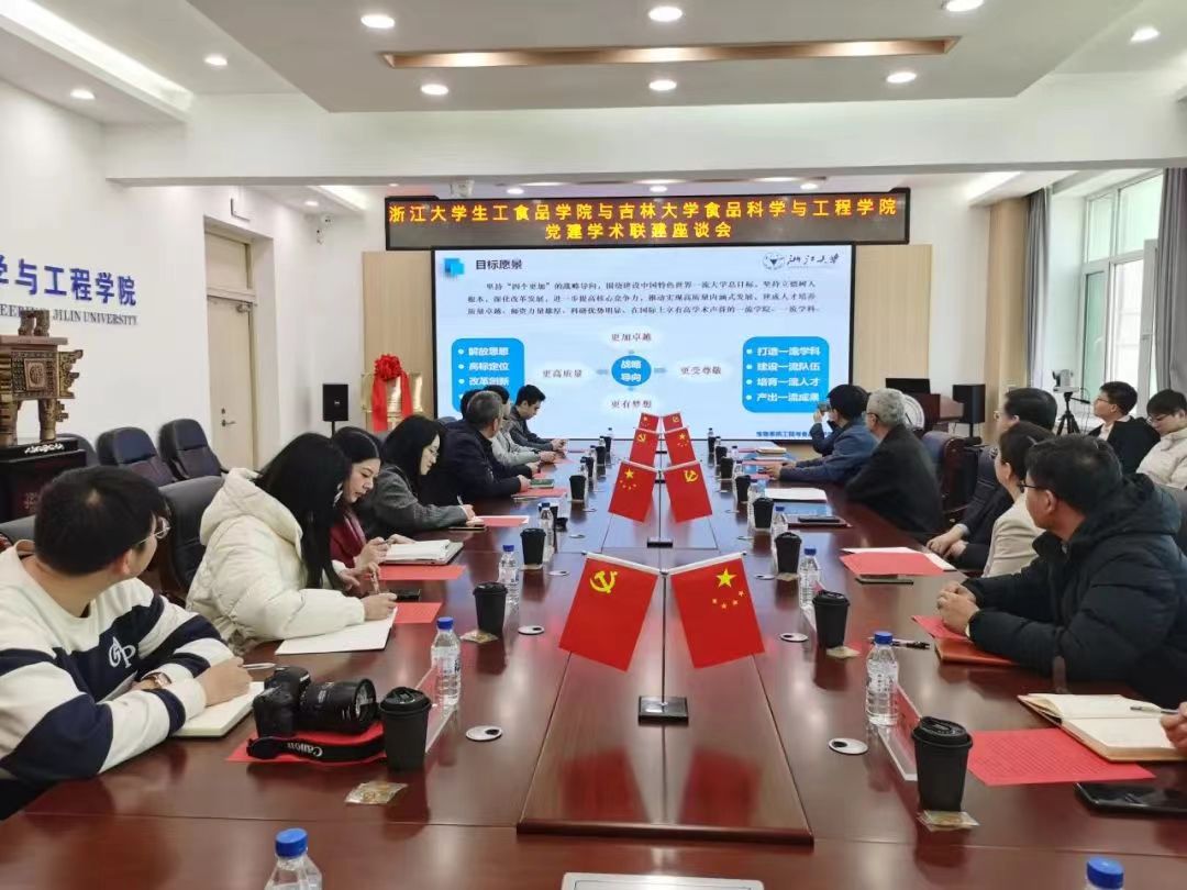 的基本情况、师资力量、人才培养、科研项目、队伍建设等方面进行介绍,并就学生专业思想稳定、本科生创新能力培育、人才培养路径等方面进行探讨和交流。董怀智书记表示,双方都是综合性大学中的涉农院系,在党建工作、本科生培养、专业教育等方面面临相似问题和挑战,希望能以此次联建活动为契机,互相学习,加强交流,共同谋划,为国家经济社会发展、食品学科继续前进提供智慧支撑。