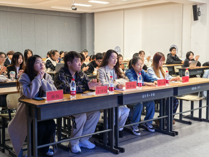团委书记王新欣老师,兼职辅导员王博旭、郎翎希,学院轮值主席顾钰、杨孟娇担任本次大赛评委。