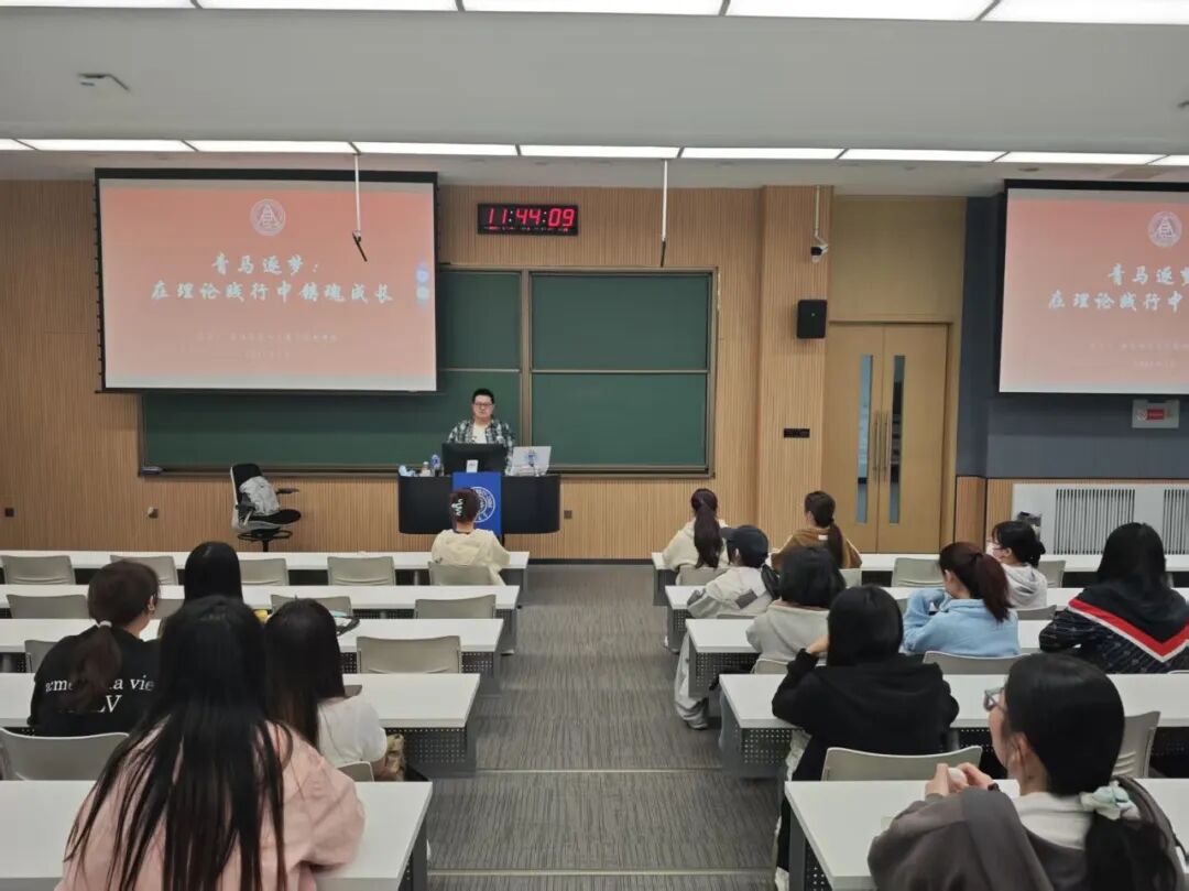 活动伊始,青马工程学员林慧凯以“青马逐梦:在理论践行中铸魂成长”为主题展开宣讲,深入剖析青马工程“理论武装、实践磨砺、红色传承”的培育内核。详细阐释了青马工程如何引导青年将马克思主义理论融入日常行动,展现了新时代青年在青马工程引领下,从理论汲取力量、在实践中成长蜕变的青春风采。激励学员们厚植家国情怀,强化综合素质,为学校发展和国家建设贡献青春力量。