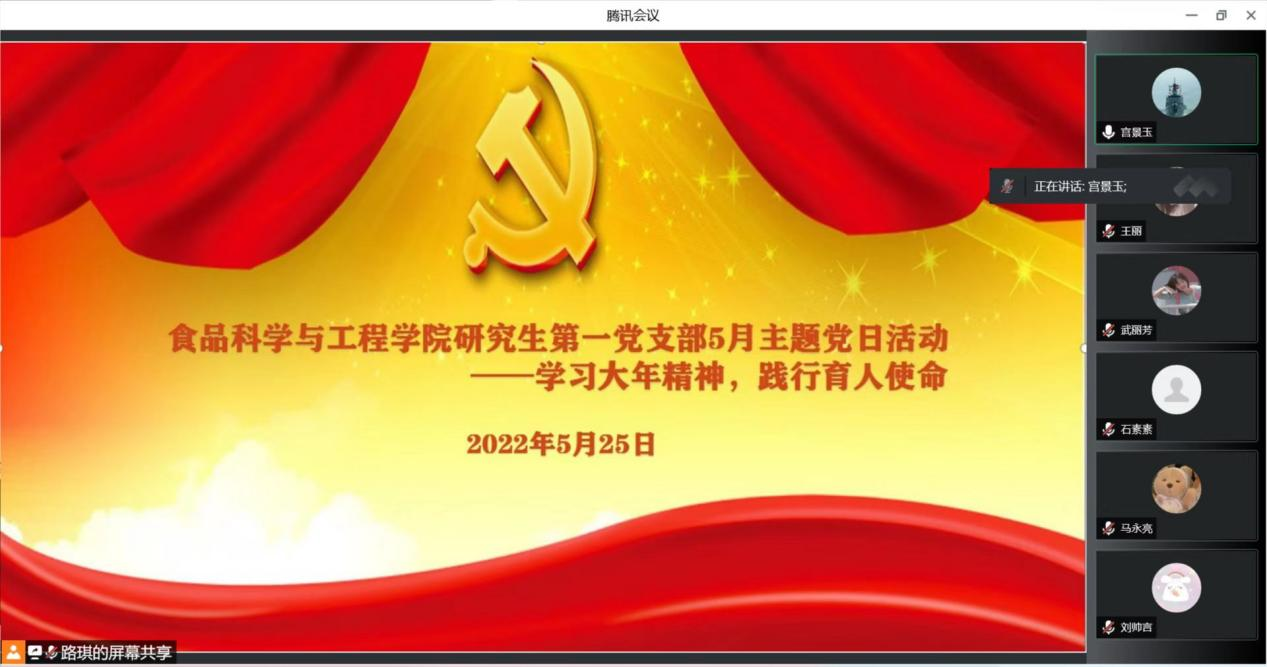研究生第一党支部展开了“学习大年精神,践行育人使命”的主题党日活动。全体党员参加,由党支部副书记刘祎主持。