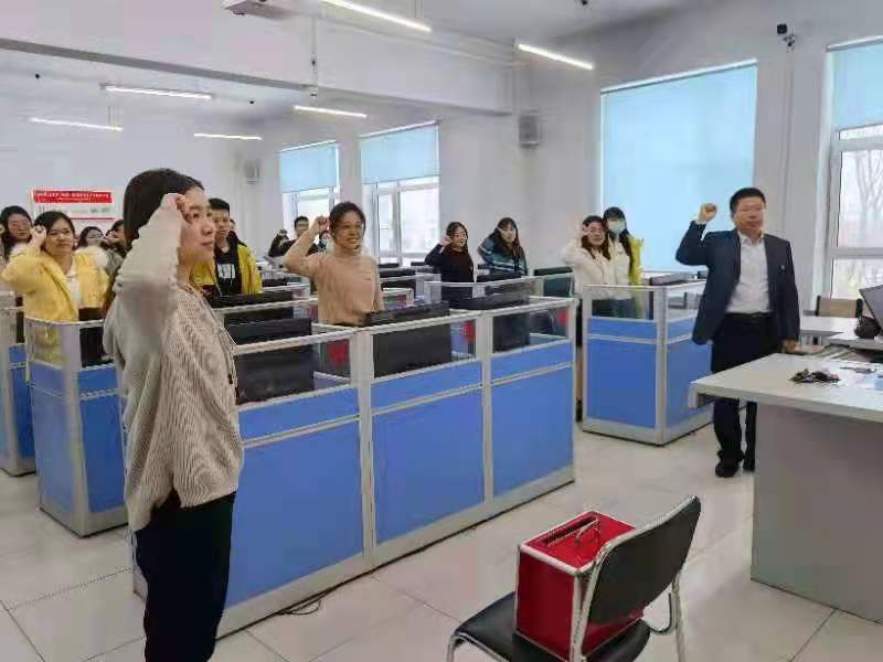 最后,进行第三项议程,全体党员起立,在领誓人支部书记宫景玉和副书记刘祎的带领下,全体党员一起面对党旗郑重宣誓,重温入党誓词,用铮铮誓言彰显永恒初心。