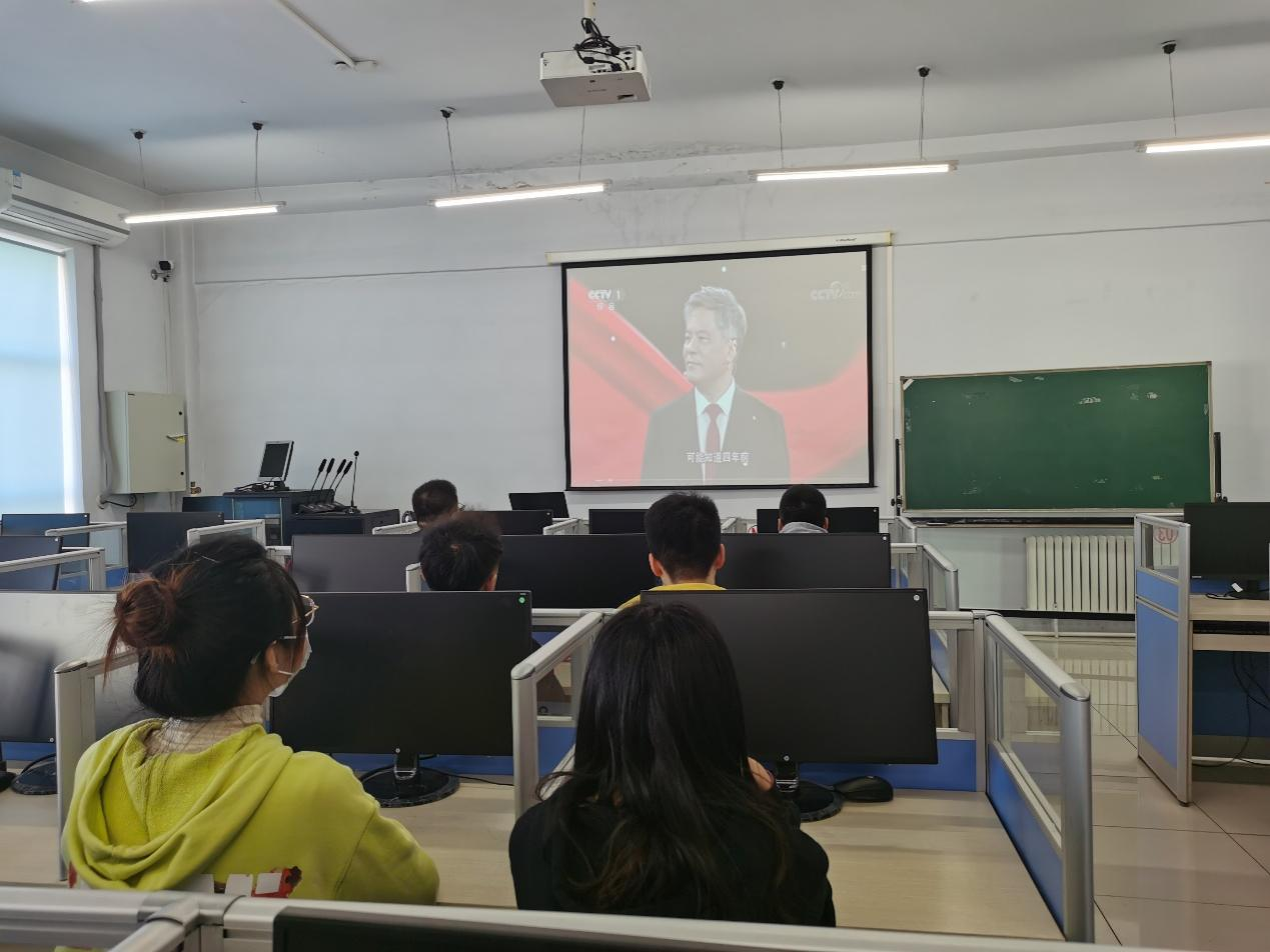 研究生第一党支部组织全体党员在食品楼三楼机房集中观看《党课开讲啦》节目第一期《党的光辉历程》。