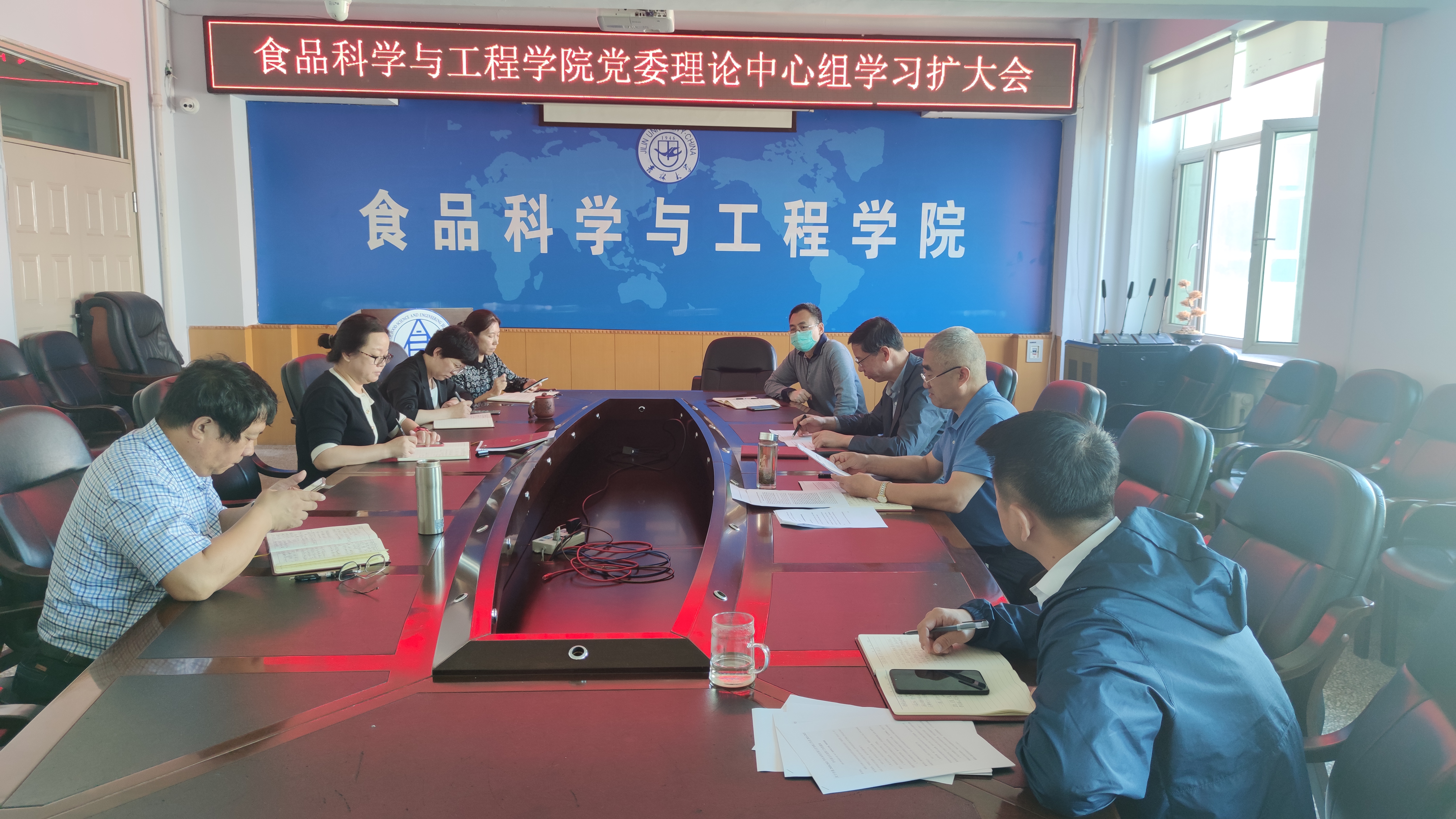 在食品楼三楼会议室召开党委理论中心组学习(扩大)会议。专题学习习近平总书记勉励全国高校黄大年式教师团队代表的回信内容。学院党委委员、领导班子成员参加了会议。会议由党委书记董怀智主持。