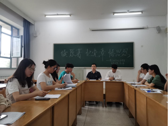 本次活动以座谈会的形式展开。首先,由第三党支部支部委员李江飞、李继红和韩竹涛三位同志同大家一起回顾“四个意识”和党章的基本内容。从党史视角来梳理“四个意识”的红色基因,以党史为镜来正确认识党章的历史地位和作用。通过“四个意识”的梳理和党章的历史演进的回顾,从而领会党章的现实意义,进一步提升党性修养,领悟政治思想。