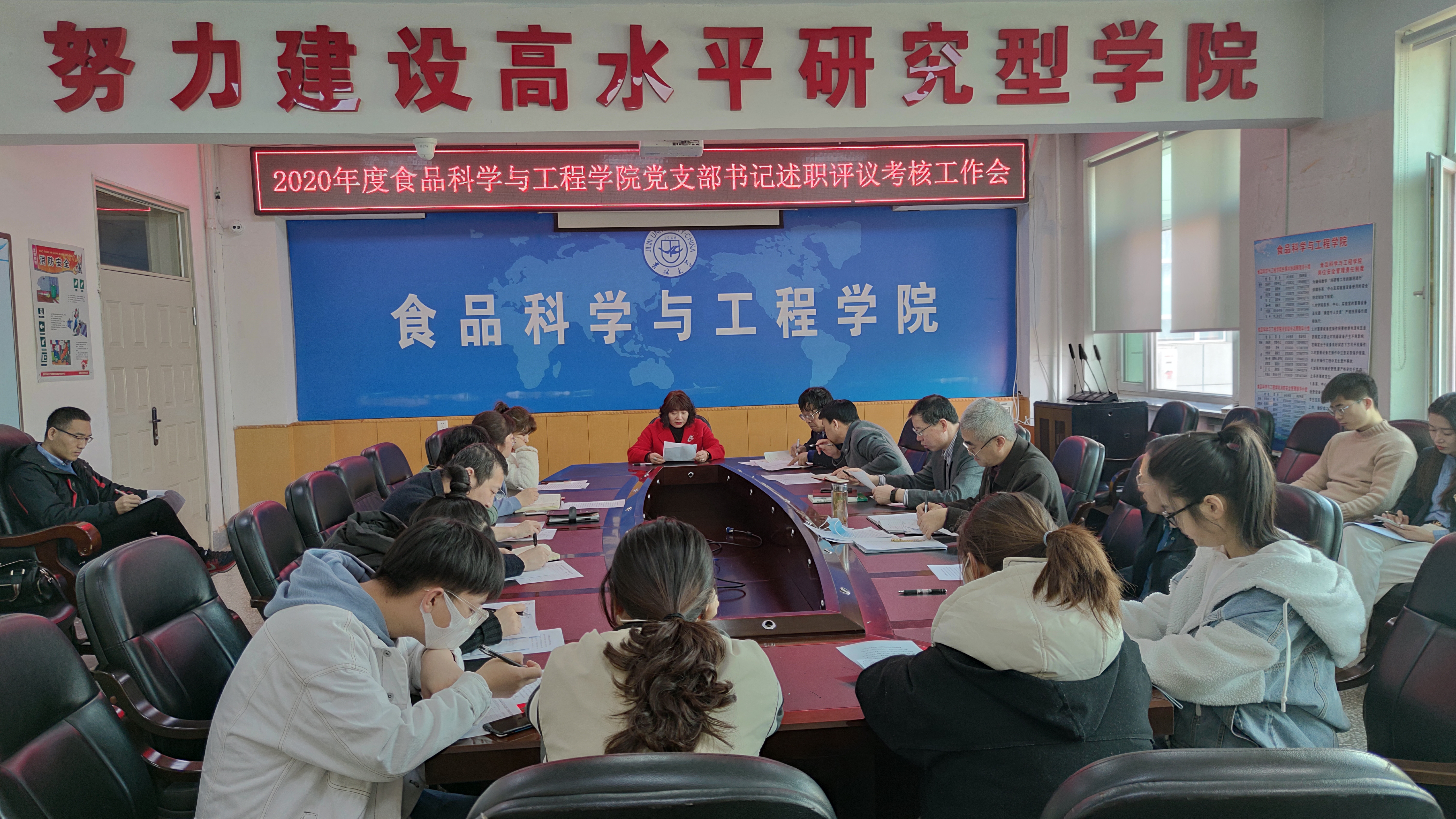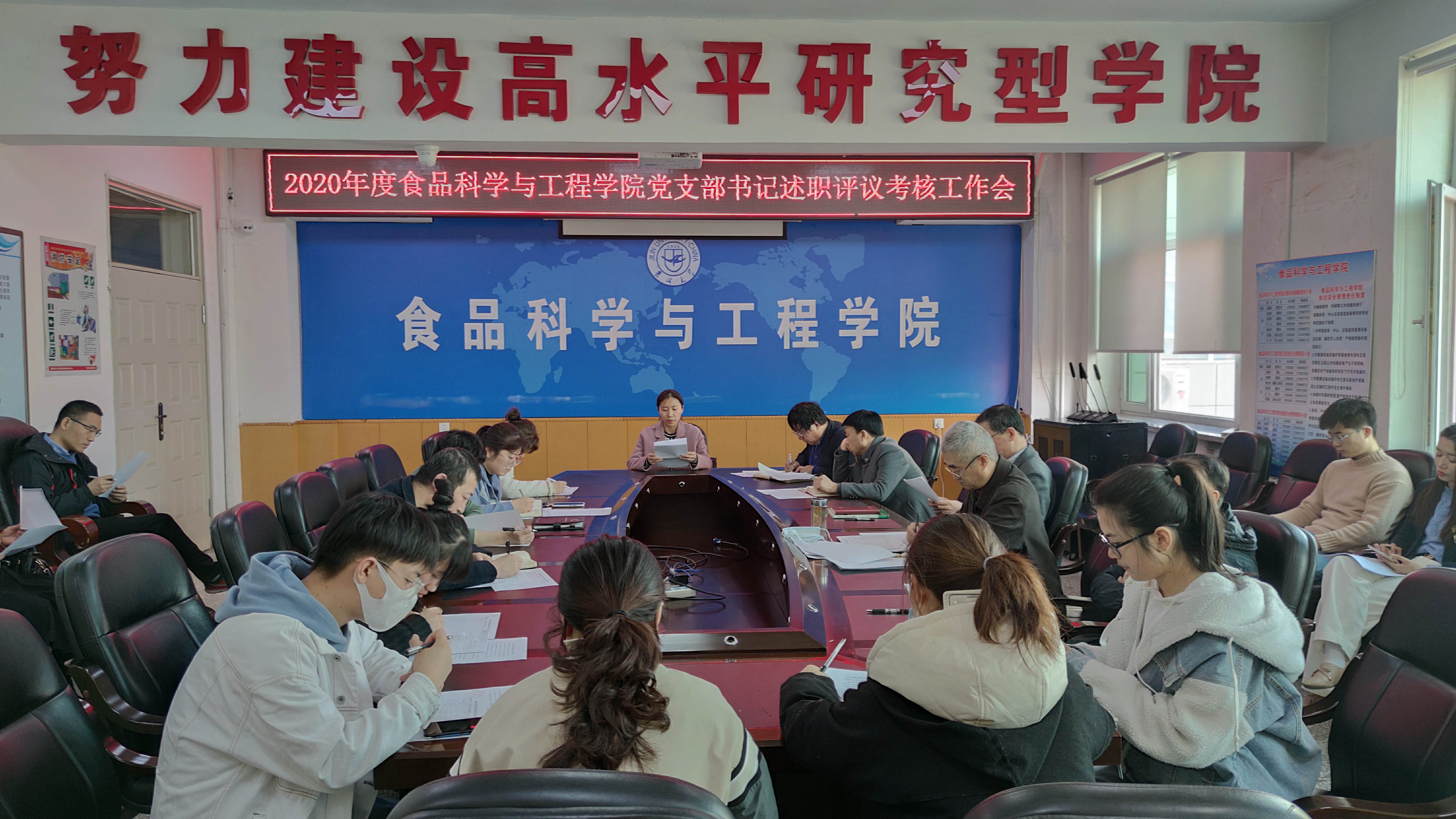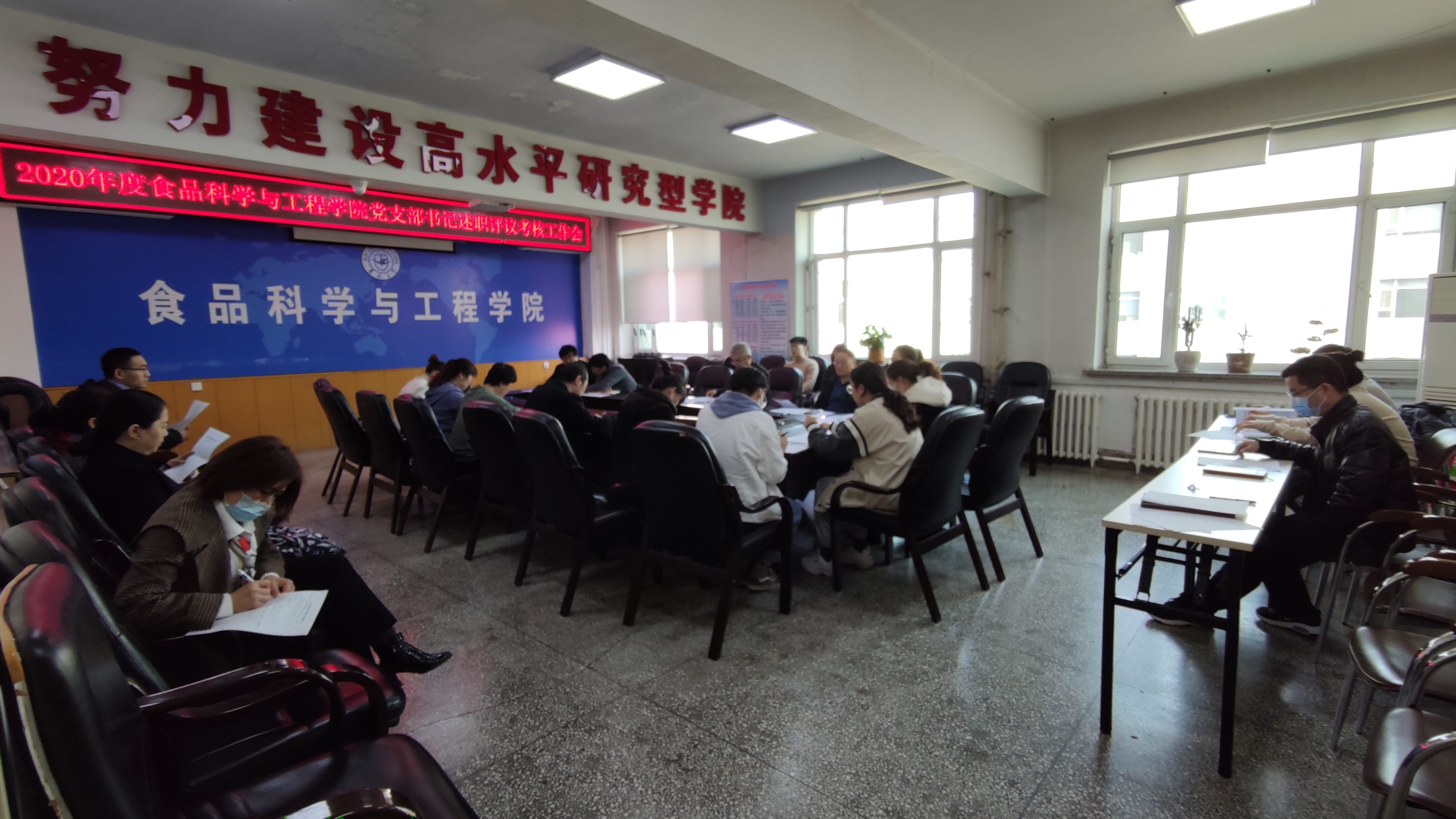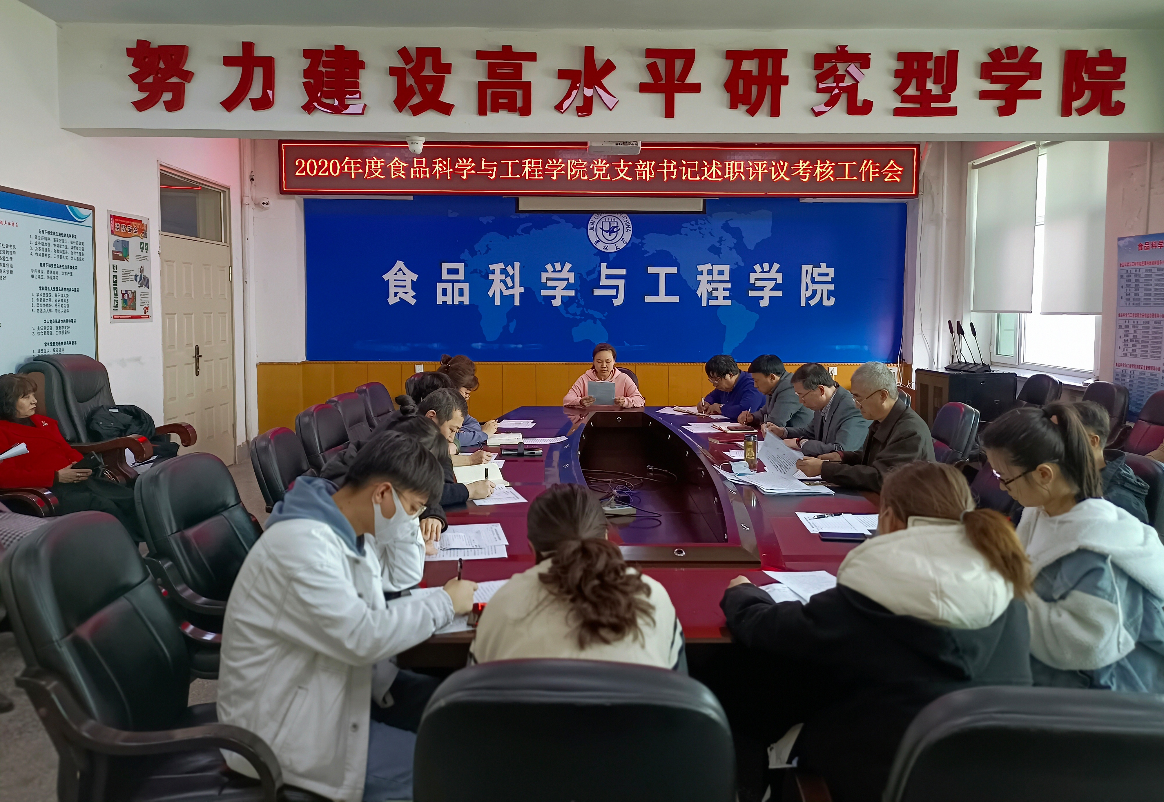 在食品楼三楼会议室召开2020年度党支部书记述职考评会。学院党委委员、各党支部党员代表、党支部书记参加了会议。会议由学院党委书记董怀智主持。