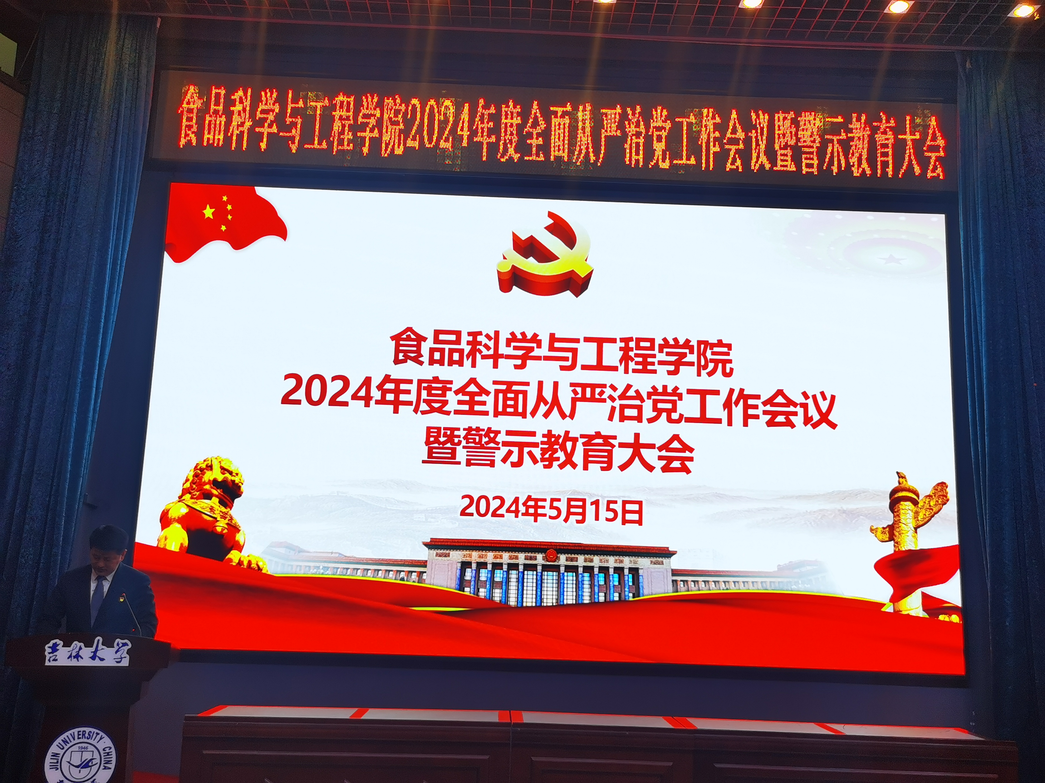 于2024年5月15日下午,在和平校区图书馆二楼报告厅召开2024年全面从严治党工作会议暨警示教育大会,全体教职员工参加会议,会议由党委书记董怀智主持。